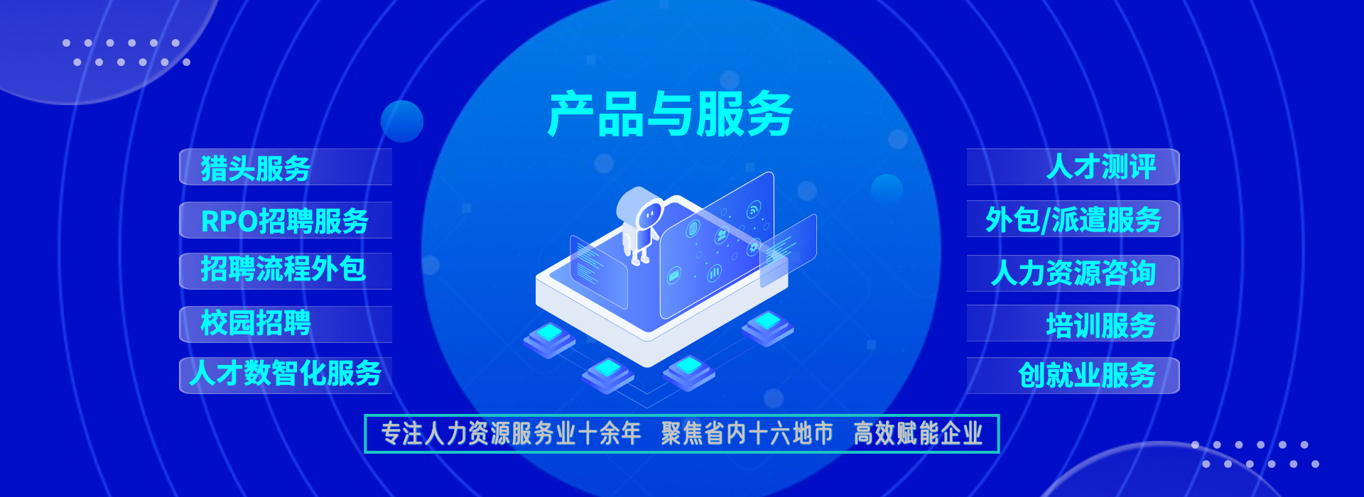 一站式服務(wù),降低企業(yè)管理成本 事務(wù)外包:人事事務(wù)外包,實習(xí)生招聘與管理外包 崗位外包:IT技術(shù)、財務(wù)/會計、行政文秘類和市場類崗位 項目外包:校園招聘外包、招聘流程外包、社交媒體運維外包、設(shè)計創(chuàng)意外包 業(yè)務(wù)流程外包:物業(yè)管理項目外包、零售快消行業(yè)的營銷服 務(wù)外包、倉儲物流業(yè)的倉儲與配送外包、O2O地推營銷外包、 呼叫中心外包等